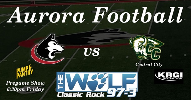 The Aurora football team seeks a sixth straight win against unbeaten Central City. Both teams are 3-0 in C1-5 district action and have clinched playoff berths. Listen to a preview and interviews with Coach Kyle Peterson and senior Ian Jensen. Coverage begins at 6:30 on 97.3 the Wolf.
